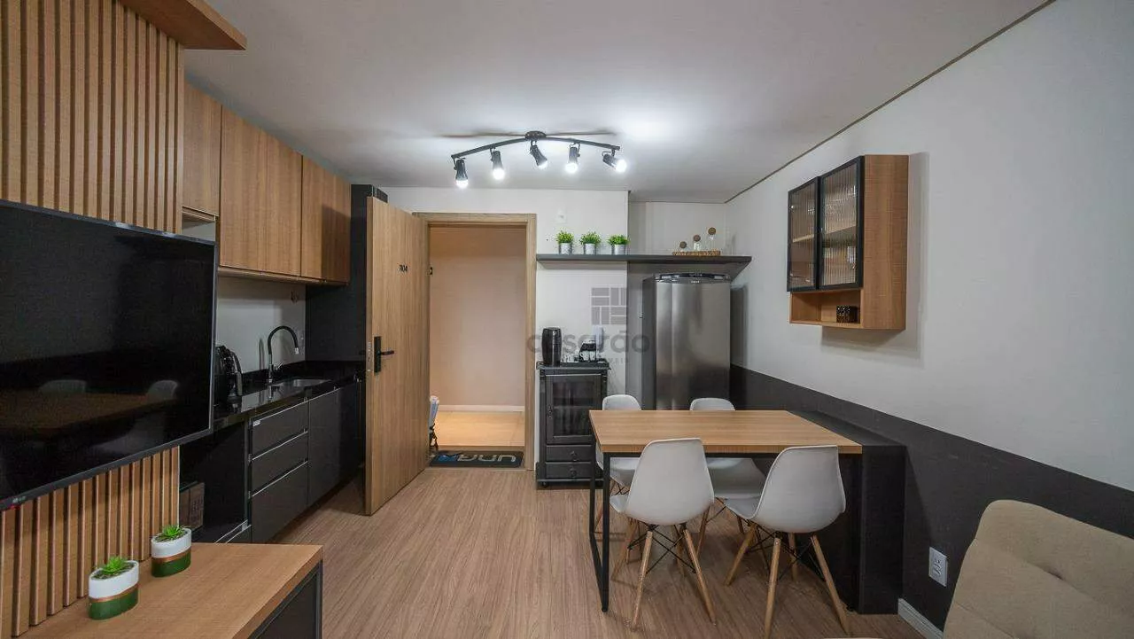 1 Sala(s), 1 quarto(s), 1 banheiro(s), 1 vaga(s), elevador, 1 ar condicionado, área de serviço, armário de banheiro, armário de cozinha, armário(s) no quarto, box de banheiro, mobiliado, circuito interno de tv, gás canalizado, interfone, portaria 24 horas, 1 churrasqueira, 1 espaço gourmet, 1 ar condicionado, armário sala, cozinha com armários, 1 cozinha integrada