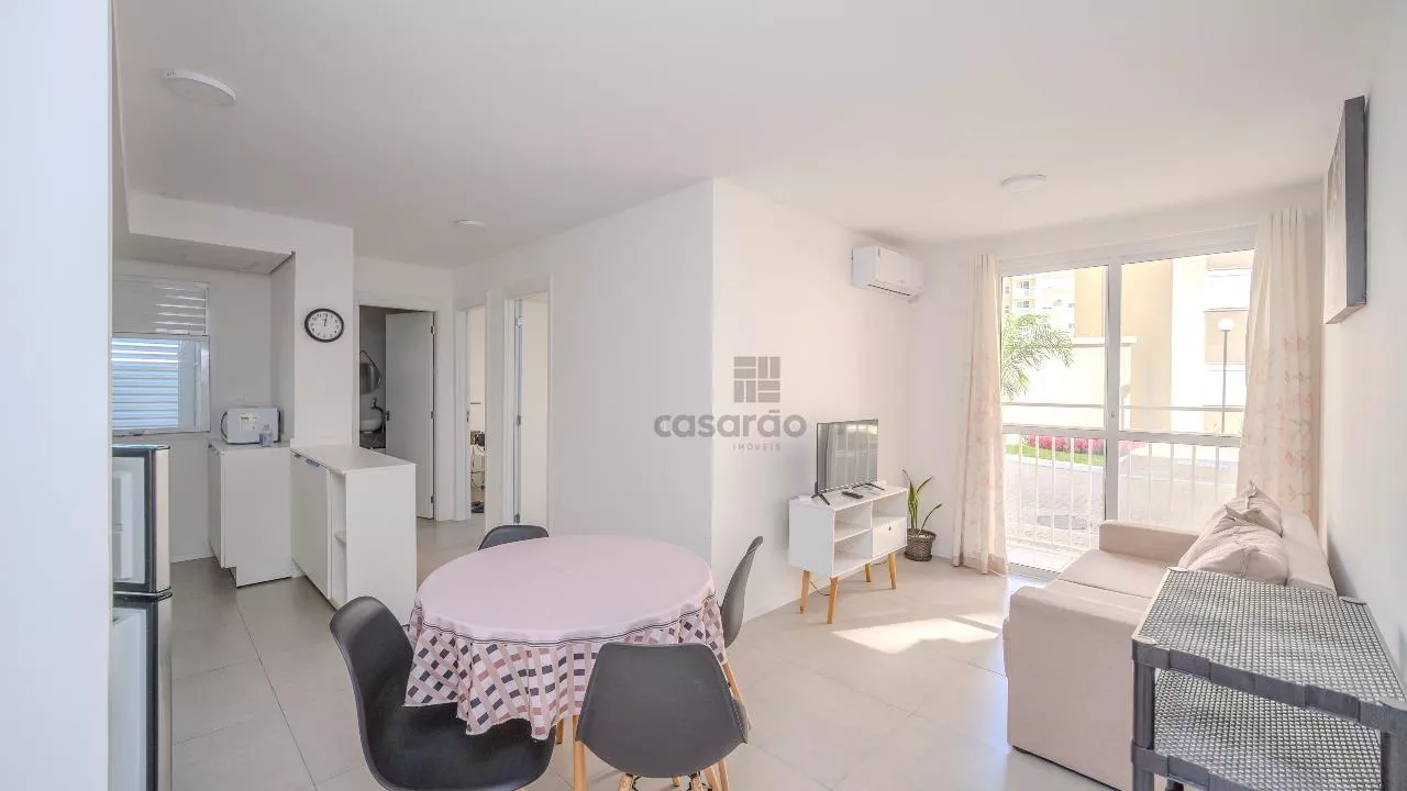 1 Sala(s), 2 quarto(s), 1 banheiro(s), 1 vaga(s), elevador, 1 ar condicionado, área de serviço, armário de banheiro, armário de cozinha, armário(s) no quarto, box de banheiro, mobiliado, circuito interno de tv, gás canalizado, interfone, portaria 24 horas, segurança 24 horas, 1 churrasqueira, 1 piscina, 1 playground, quadra esportiva, salão de festas, 1 ar condicionado, armário sala, 1 cozinha integrada, 1 sacada