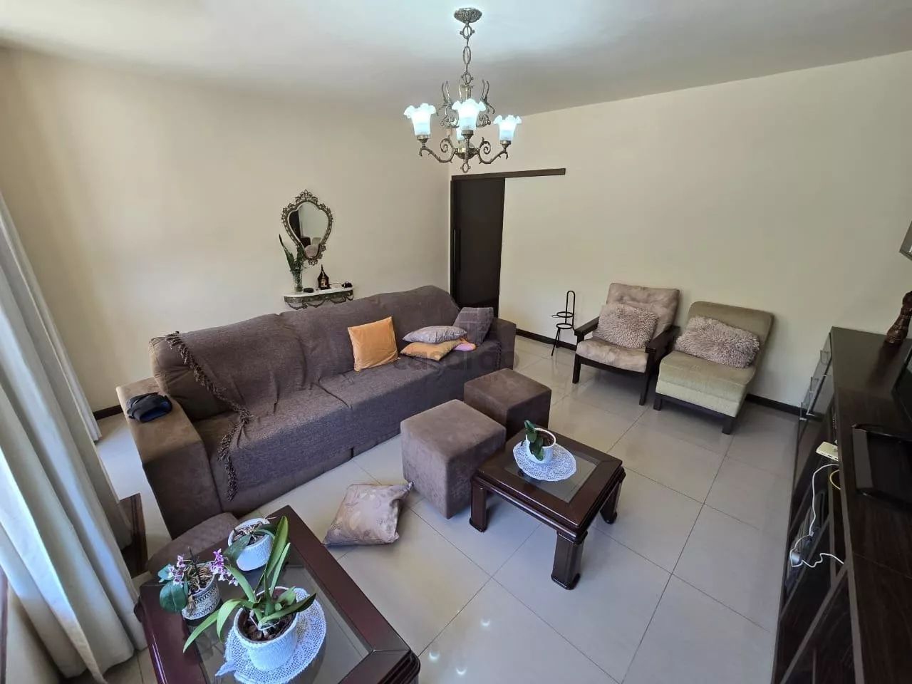1 Suíte(s), área de serviço, 1 banheiro social, 1 churrasqueira, 1 sala jantar, 1 sala t v, 1 suite master, 1 jardim